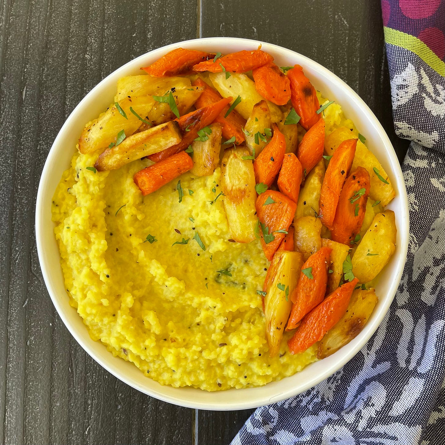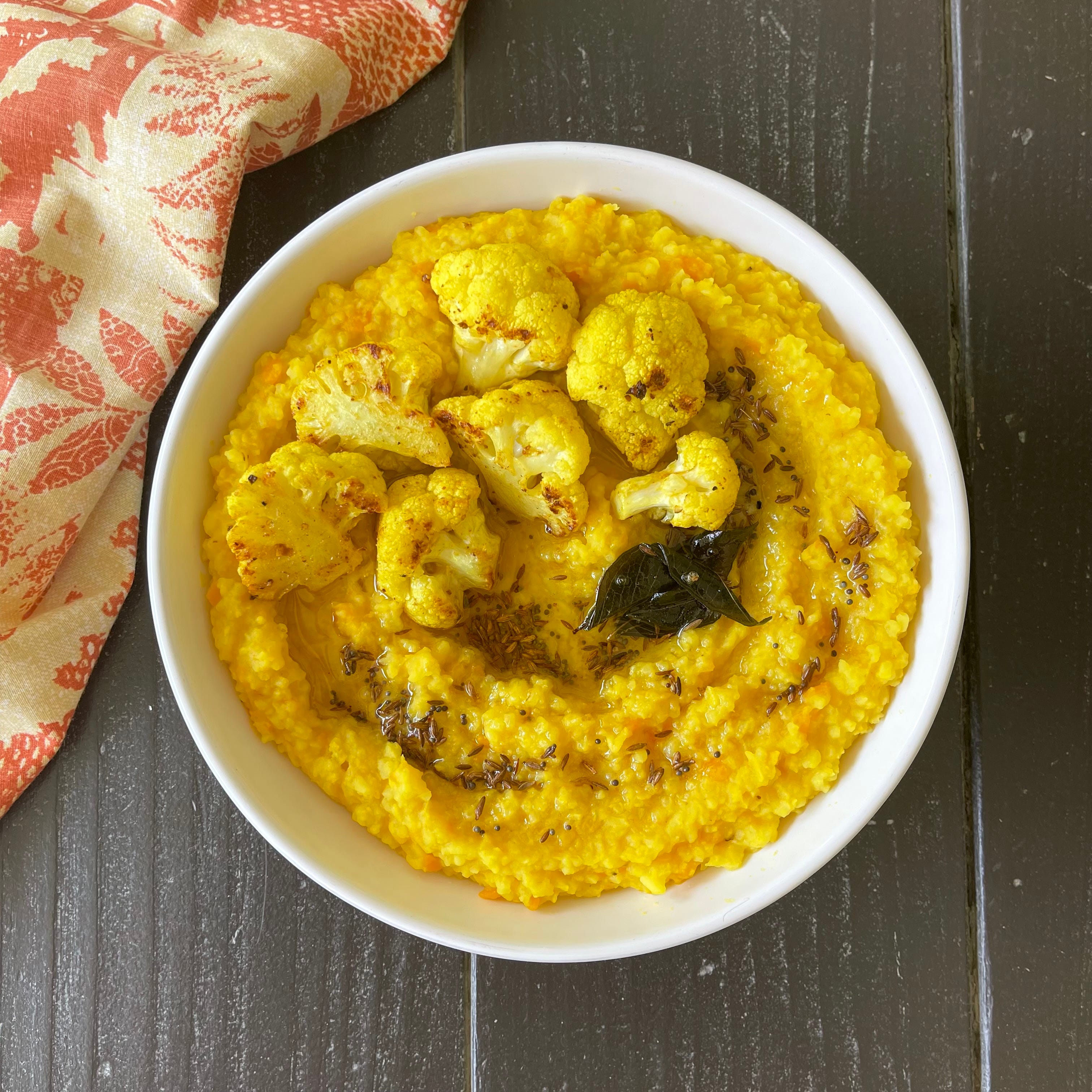 I almost always pair it with whatever vegetables are in season - usually roasted in the oven until caramelized and tender. I’ll spoon the khichdi into a bowl, top it with those veggies, and suddenly dinner feels like both nourishment and comfort food.